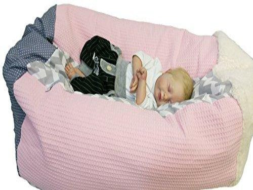 There is nothing more comfortable than this pillow! The pillow is a companion for years, whether as a baby pillow in the first few weeks and months, it adapts perfectly to the shape of the body and offers the little ones the necessary warmth and security or as a beanbag to lounge or cuddle suitable for all ages. The pillow comes in 2 parts, the ticking is breathable, antibacterial and antiallergenic, can be washed if it fits in the WM, otherwise it should be taken to the dry cleaner. The cover is made of high-quality cotton fabrics/designer fabrics and can be washed at 40°C. The head piece is made of cuddly soft plush, which offers the children an extra cuddly experience. There is the possibility of choosing the fabric so that it could be suitable for the children's room, please contact us. Please note that our products are hand made and are made to order, it ensures that each product is unique. Furthermore, the editions are STRICTLY LIMITED to ensure that you receive a unique product that not everyone has. You are purchasing a product that is manufactured in Germany and is not a mass-produced item. You will only receive the product from us at trade fairs such as Baby World, at Da Wanda creative markets and exclusively at Amazon in a limited edition! Size: small beanbag/baby cushion, height 70cm, below D 65, above D 50cm Size: large beanbag from 6 years, height 80cm, below D 80cm, above D 65cm Caution! Figure Small beanbag baby cushion