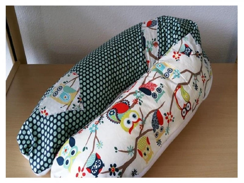 Atelier MiaMia Nursing Pillow or Side Sleeper Pillow Positioning Pillow Wave Dark Blue White Owls 13